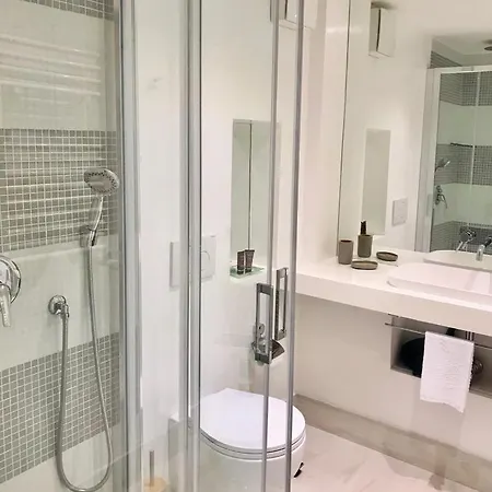 Le camere del Les Lilas Aparthotel sono dotate di un asse e di un ferro da stiro e di un impianto di climatizzazione, nonché della possibilità di preparare tè/caffè. Sono inoltre presenti un asciugacapelli e un bidet, insieme a diversi comfort, come un asciugacapelli e articoli da toeletta. Vanta la vista sul mare.